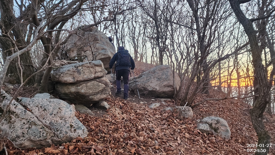 점점 가팔라지는 오름길을 따라 바위들이 듬성듬성 위치한 사면을 올라,