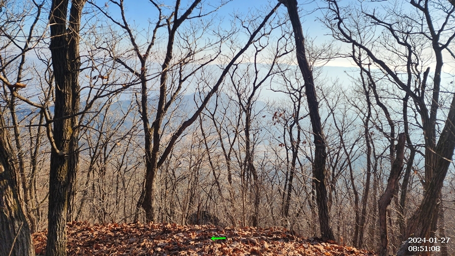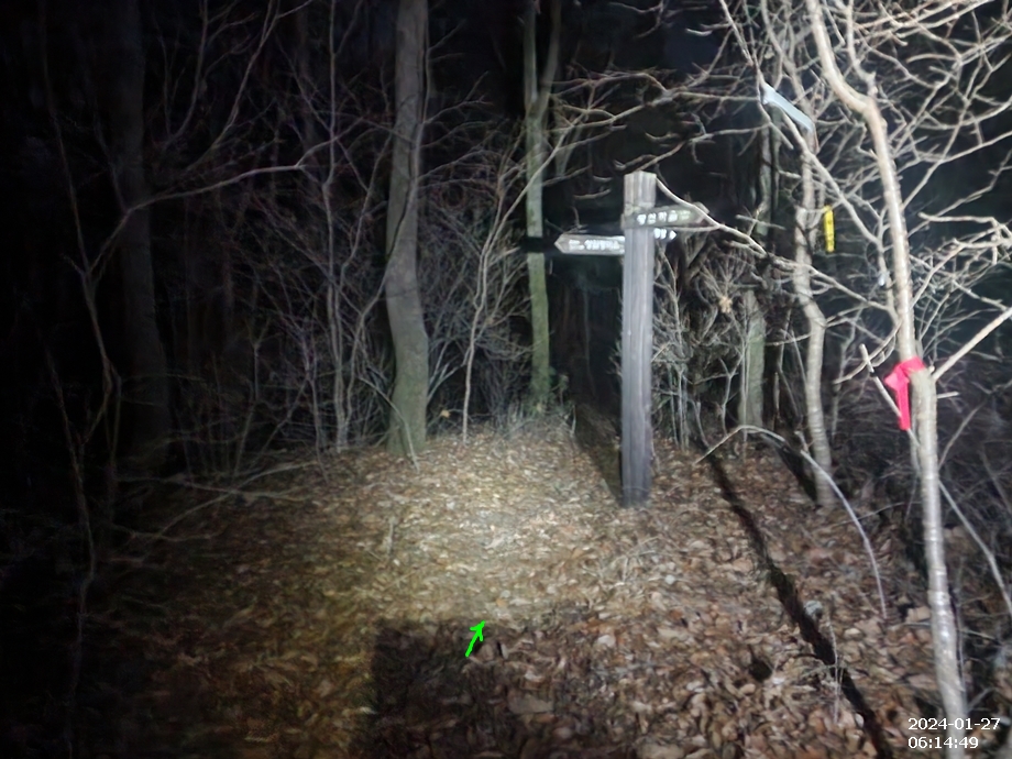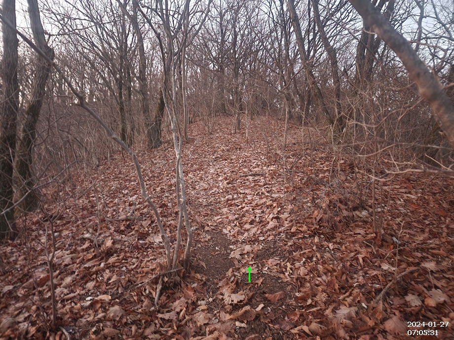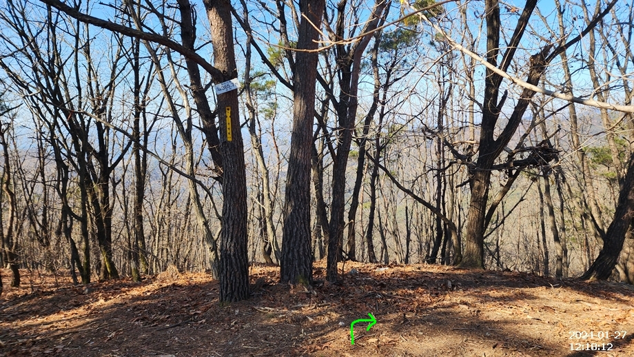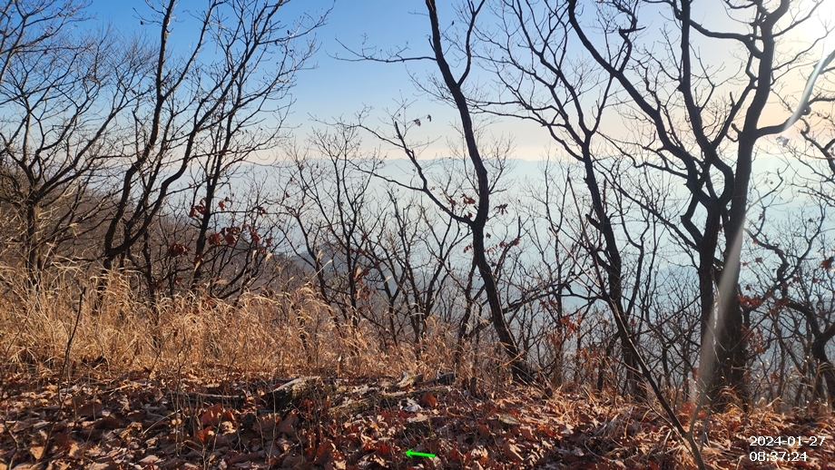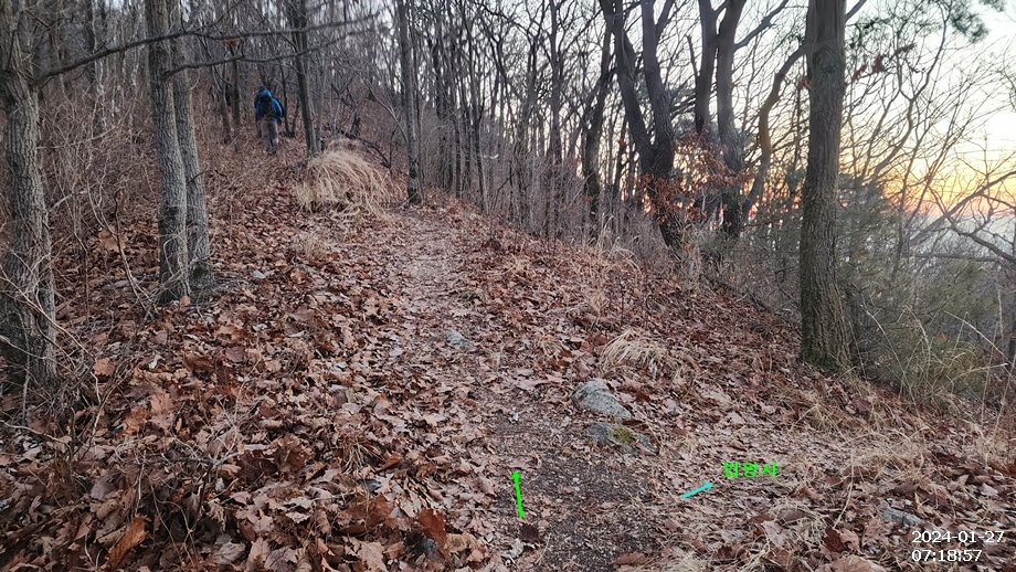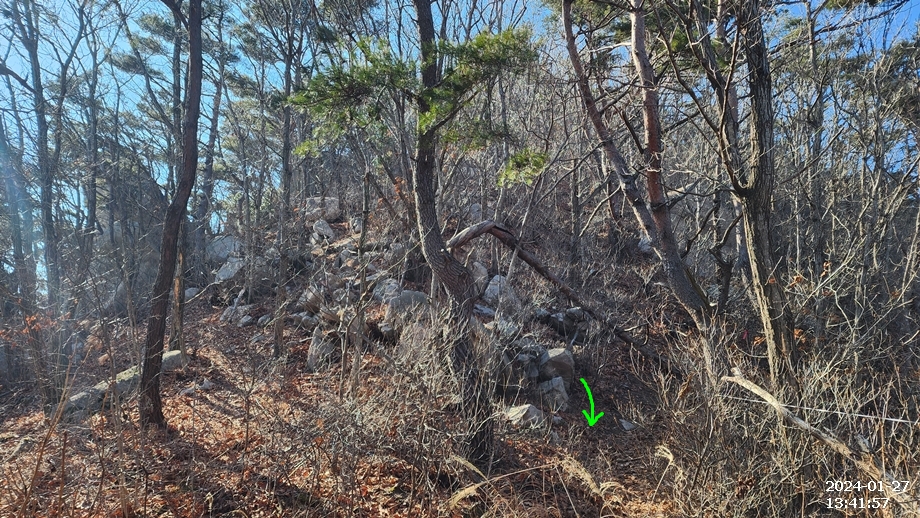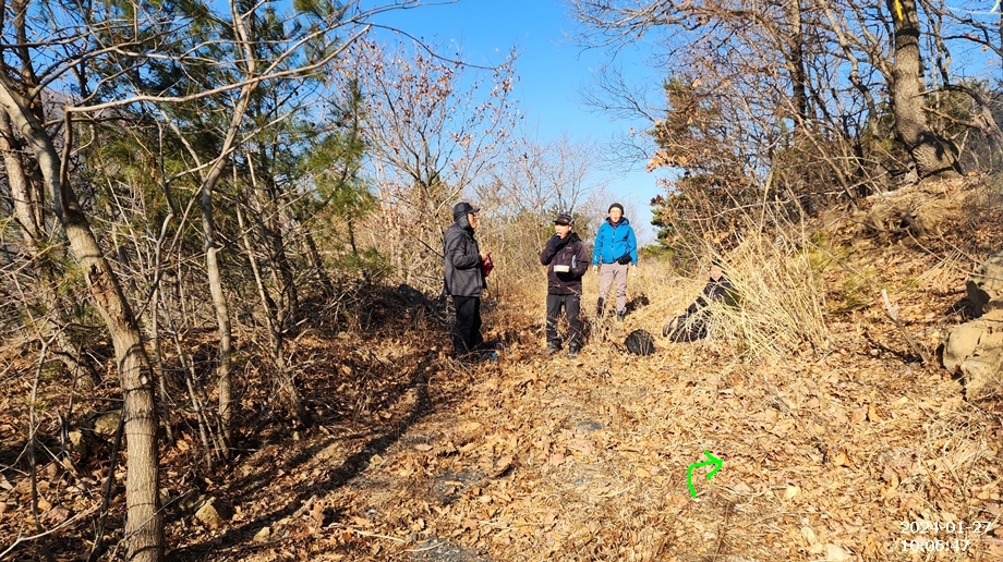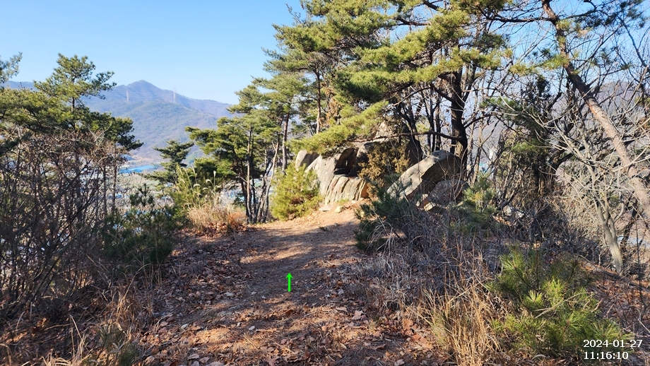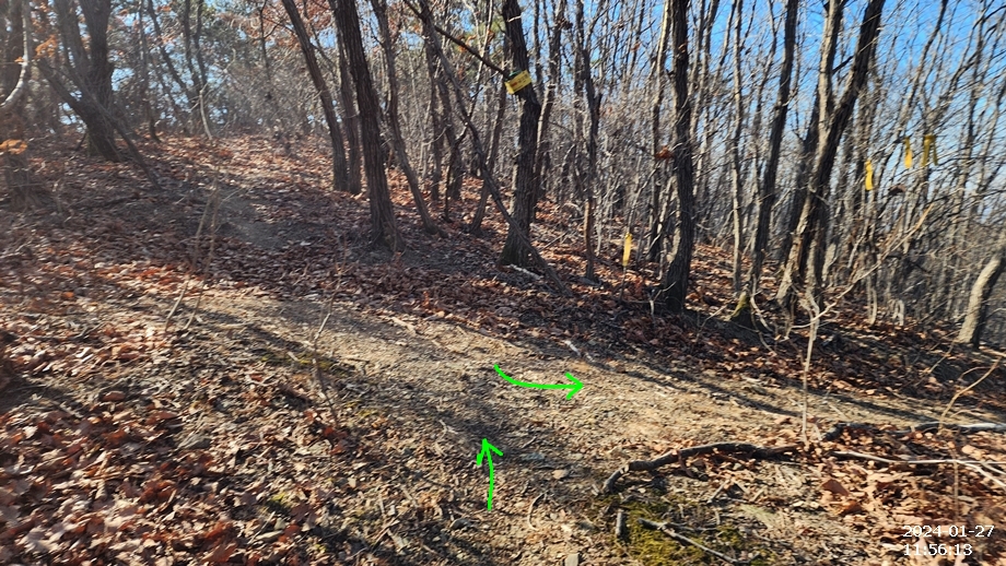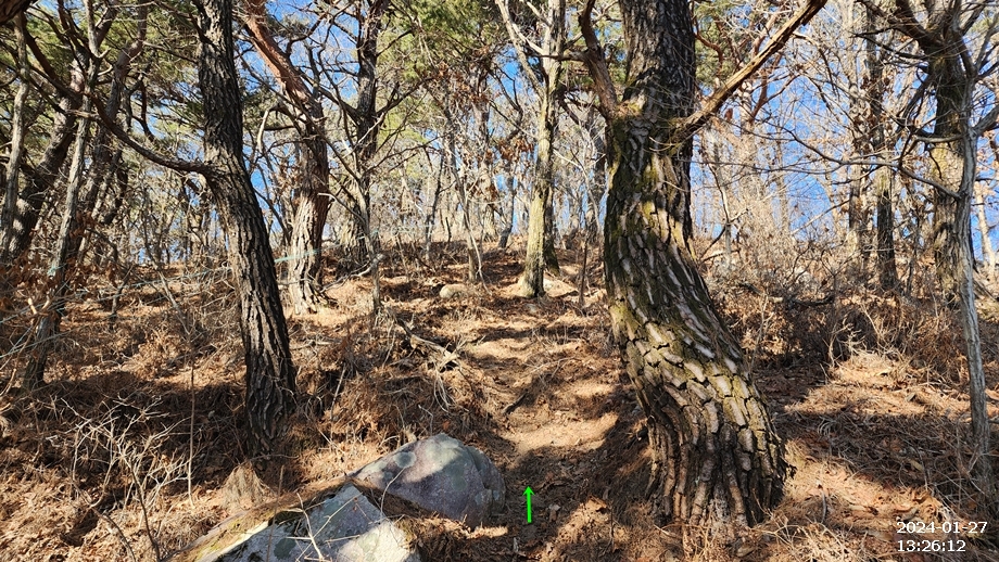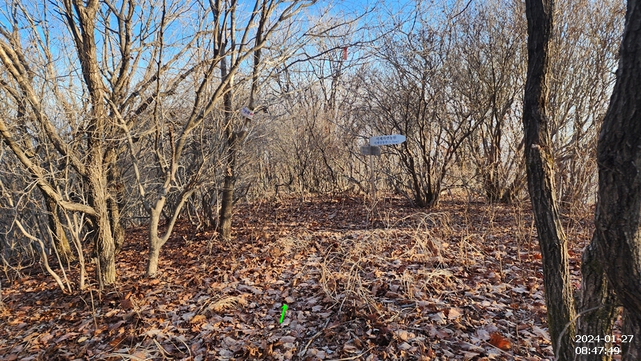 우측 방향 올라온 기맥 갈림길에서 직진 즉 기맥길 기준 좌틀하여 진행하면,