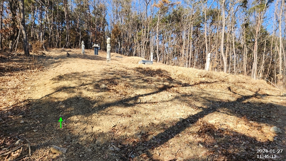 완만한 안부를 지나 다시 순안김공 가족 묘지 좌측으로 올라,