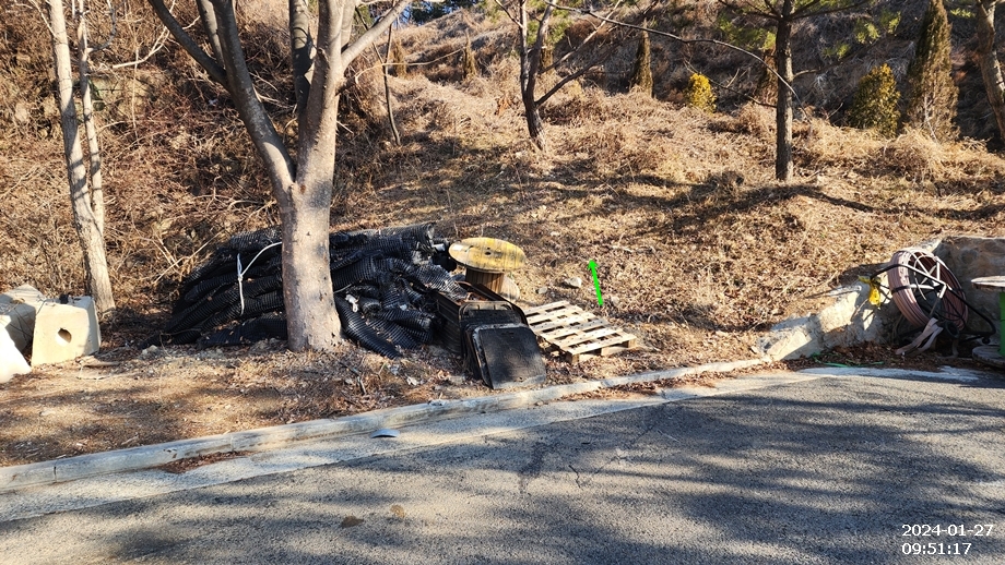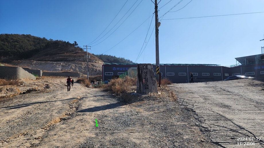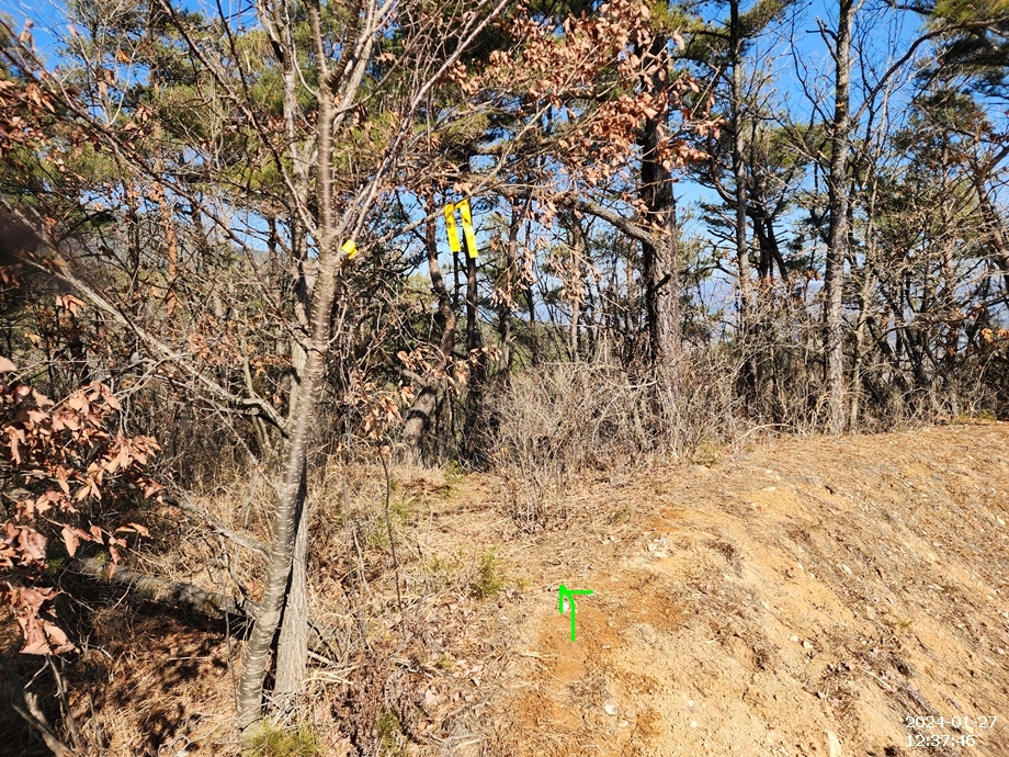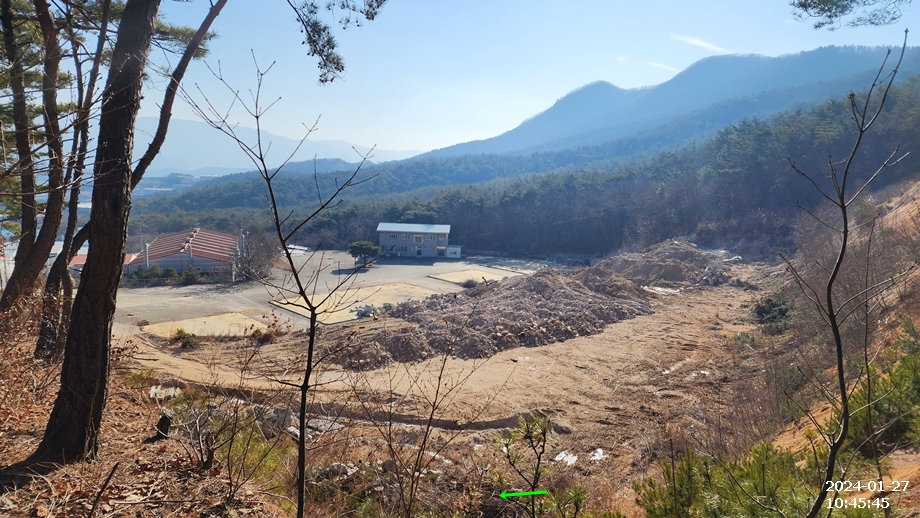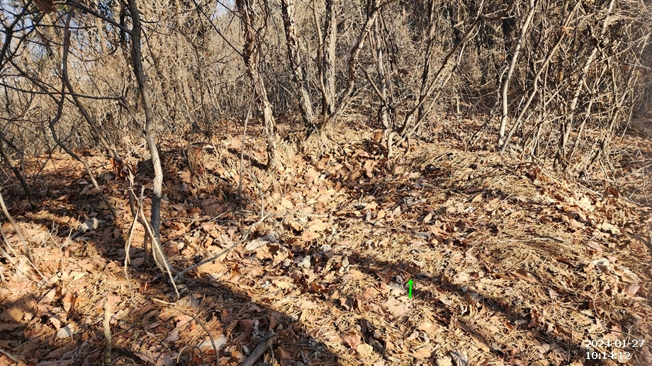 희미한 길흔적을 따라 우측 폐공장 터 조성을 위해 쌓은 듯이 보이는 축대 위로 올라서서,