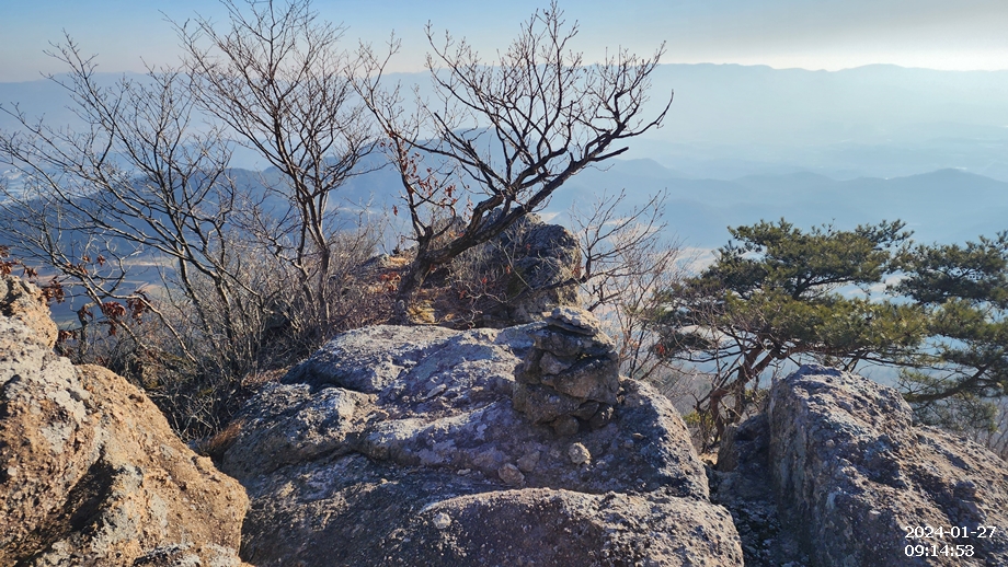 치술령 주능선이라 그런지 차가운 겨울바람이 세차게 불어오는 능선길을 잠시 더 진행하면,