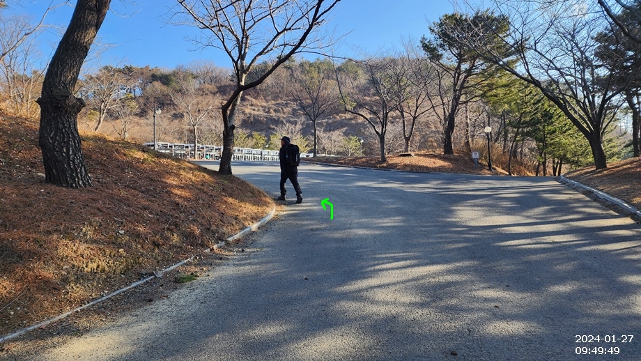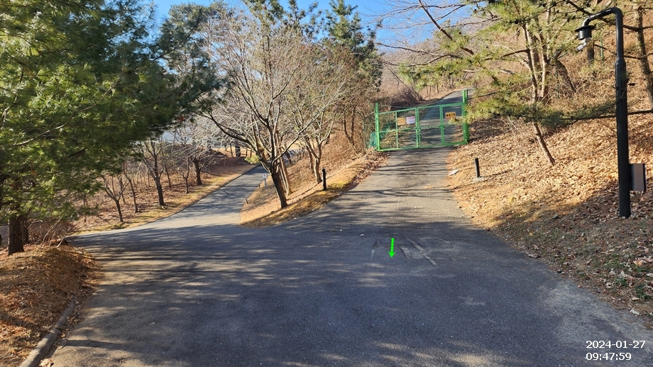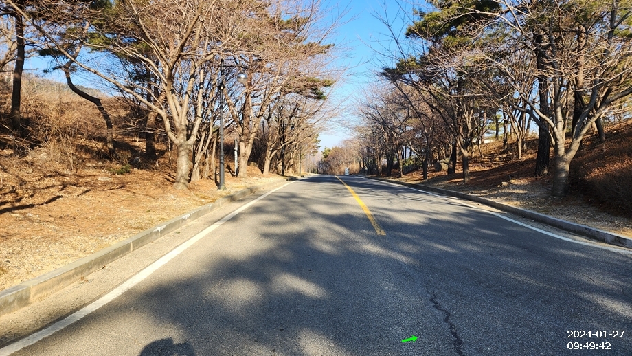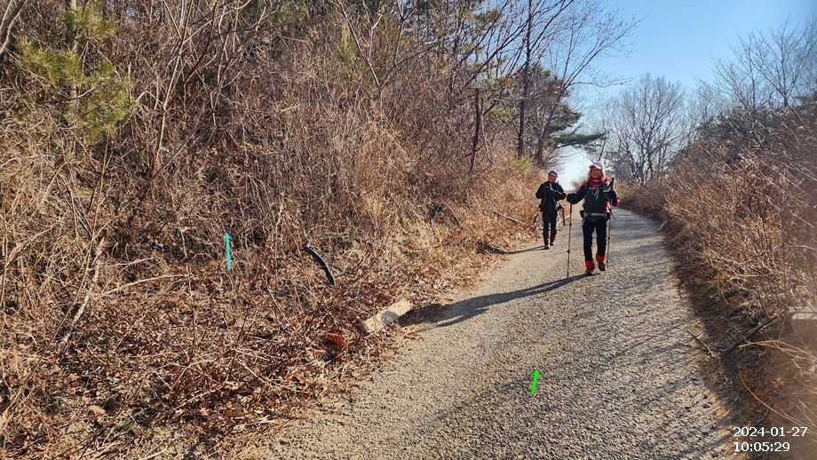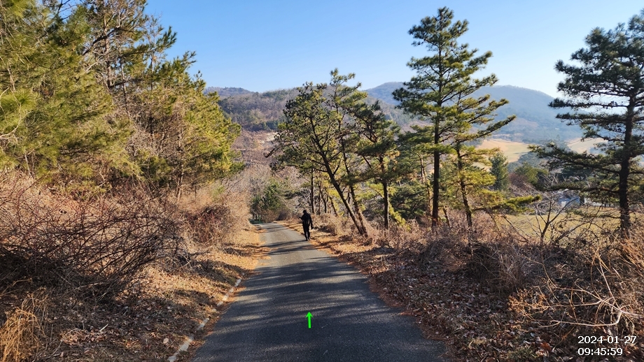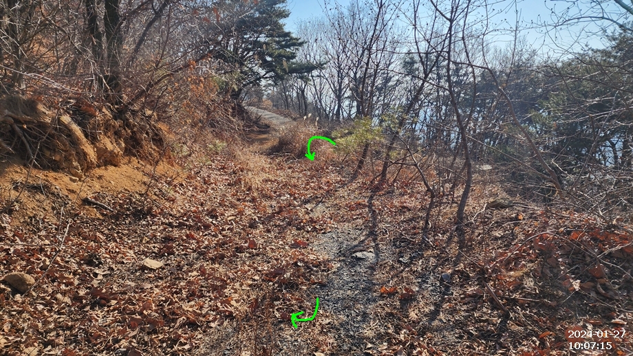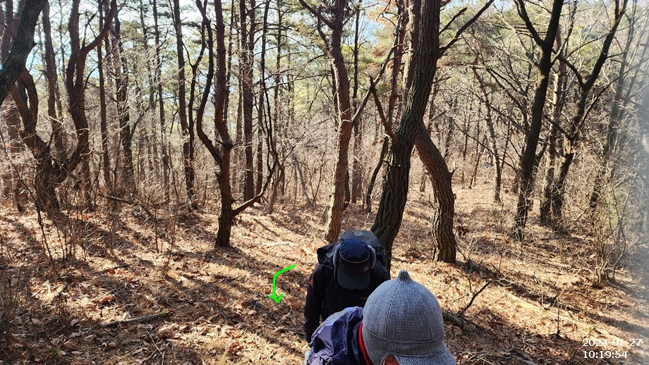 호미기맥 길은 왔던 길을 되짚어 나가 기맥 진행방향에서 우틀하여 이어진다.