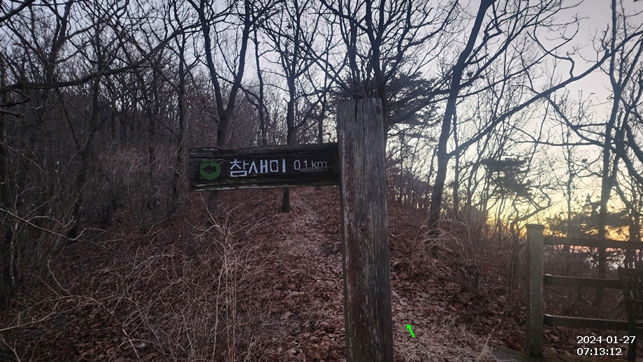 좌측 참새미(0.1km) 방향 이정표가 있는 데크목 전망대에 도착하는데,