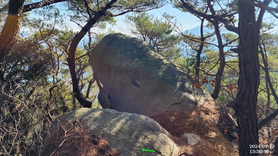 다시 삼거리 갈림길 이정표가 나오는데 우측 거대한 바위 방향으로 들어서니,