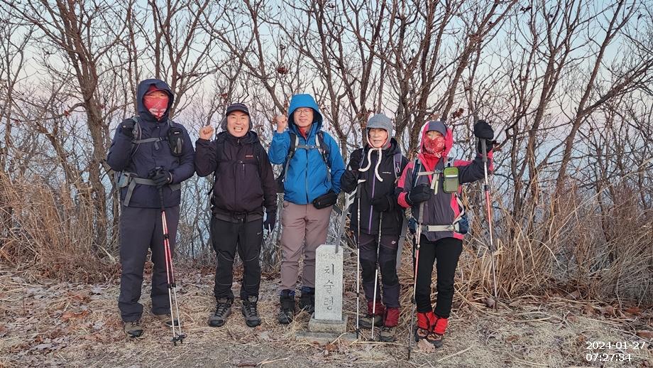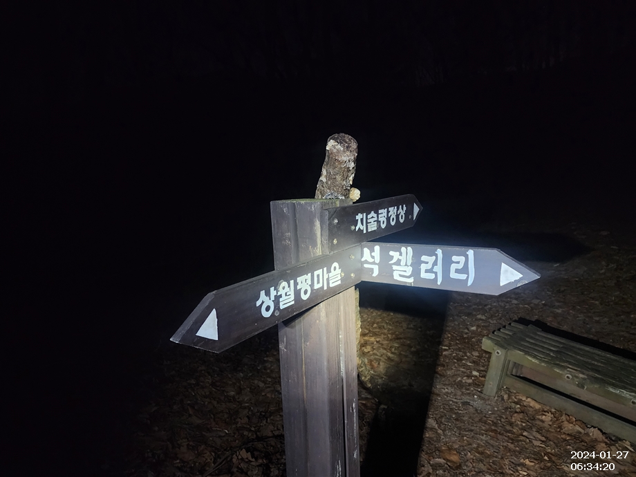 일반인들이라면 고개를 내젓는 20km가 넘는 마루금 산행이 부담스러운 분들도 조금은 여유롭게 마루금 산행을 즐길 수 있도록 즐산팀 코스를 따로 진행하고 있다. 당일 코스 중에서 조금 짧은 핵심 부분만을 산행할 수 있도록 출발 시간과 지점 그리고 도착 지점을 별도로 정하여 산행을 하게 된다. 그래서 보통은 종주팀보다 조금 늦은 시간에 출발하게 되는데, 오늘은 교과서에도 나오는 박재상 부인 치술신모가 동해를 바라보며 남편을 기다렸다는 치술령에서 아침 일출을 맞이하기 위해 산행 시작지점인 당산고개에서 함께 출발하기로 한다.