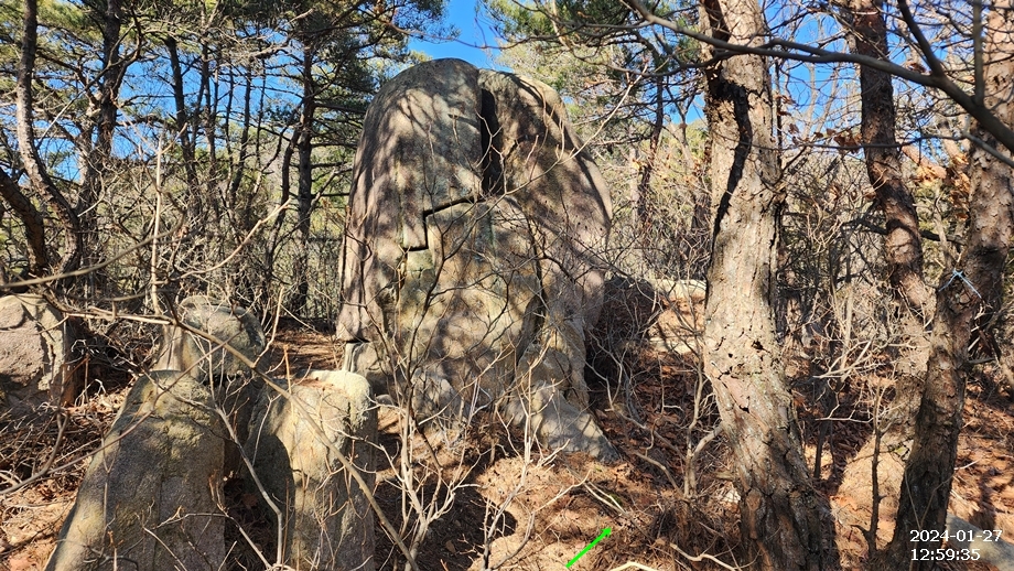 치술령 정상 도경계 아래 경주 땅에 망부석이라 이름 붙여진 암반이 이곳이고, 조금 전에 지나온 0.3km 전방의 울산 망부석 바위가 각각 따로 이름 붙여져 있는데, 두 지자체에서 서로 자기 지역의 망부석이 진짜 망부석이라고 은근히 주장하고 있는 듯하다.