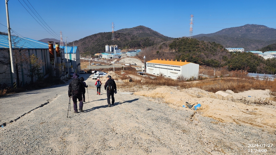 이곳 당산재에서 치술령까지의 도상 거리가 4km 정도이고 일출이 7시 25분쯤이라, 4시에 일어나 산행 준비를 하여 4시 반쯤에 산행을 시작하면, 치술령 정상에서 동해 바다를 솟구쳐오르는 아침해를 맞이할 수 있을 것이라 예상하며, 당산재 남쪽 기슭에 있는 폐공장 앞에 주차한 버스에서 산행준비를 마치고는 차가운 한기에 몸을 내맡겨,