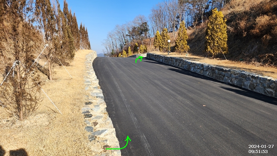 덕천기연 앞 갈림길에서 좌틀하여 계속 도로를 따라 진행하면,