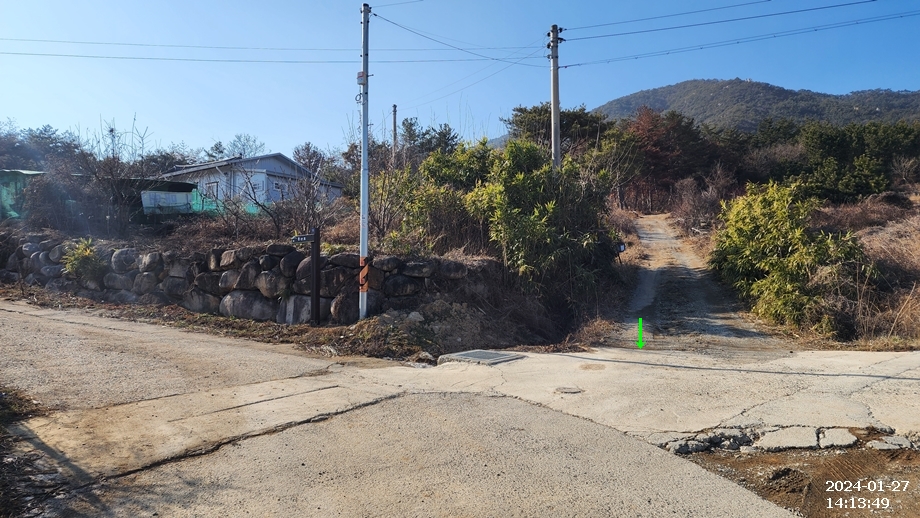 북토 마을 뒤편으로 들어서서 우틀에 이어 좌틀하여 마을길을 따라 진행하여,