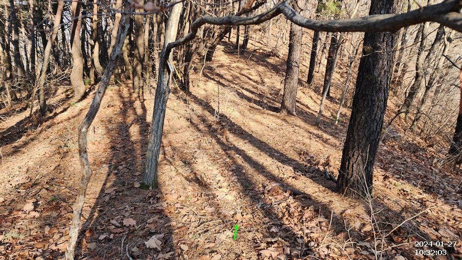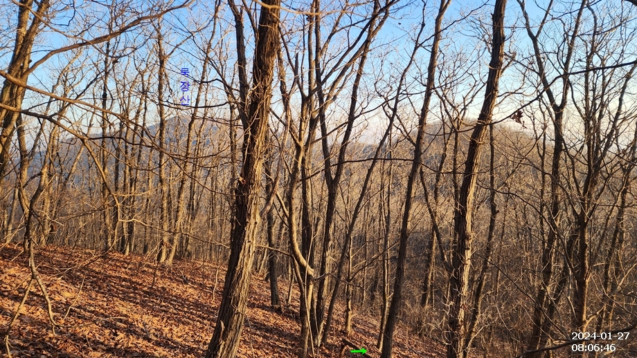 사면을 따라 기맥 능선으로 오르며 다시 호미기맥 이어걷기에 나선다.