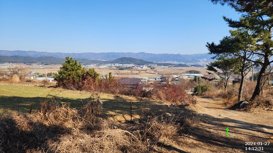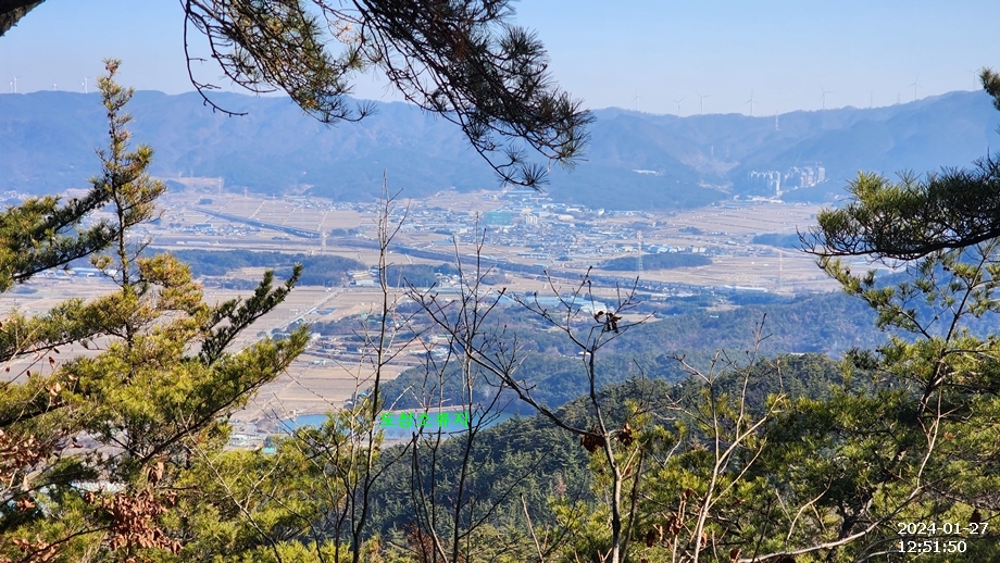 우측 아래로 호미기맥 종주자들에게 논란이 되고 있는 제내1리의 토성소류지가 내려다 보이고,
