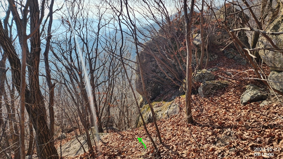 능선 좌측으로 이어지는 희미한 등로를 따라 진행하다가,