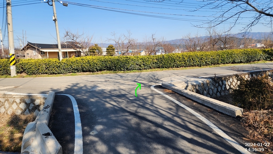 북토교를 건너자마자 좌측 둑길로 진행해야 하나 편한 직진의 도로를 따라 진행하여 순지마을 방향으로 진행한다.