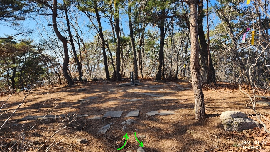 헬기장의 흔적으로 보이는 보도블록이 깔린 널따란 공터에 오석의 정상석이 자리한 마석산(531.0m) 정상에 도착하는데,