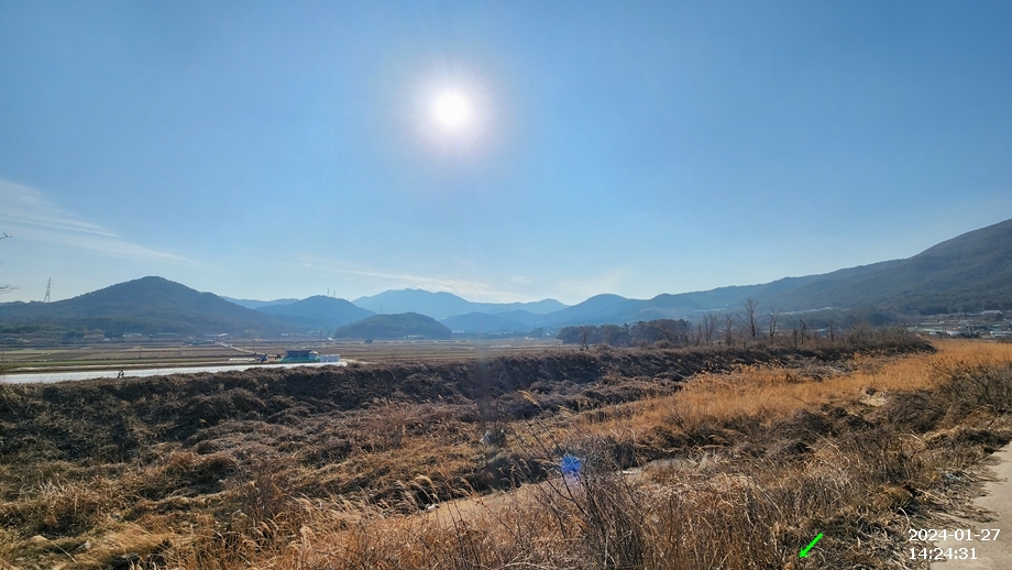 선답자들이 북토교를 건너서 좌측 둑방을 따라 진행해야 한다고는 했지만, 평야 한가운데서 어디가 기맥 능선인지를 따지는 게 그리 녹록한 일도 아니어서 그냥 순지마을로 가는 도로인 직진의 도로를 따라 진행하다가,