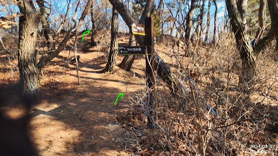 좌측 가시개(가위)바위 방향 갈림길 이정표를 지나 직진 방향으로 진행하면,